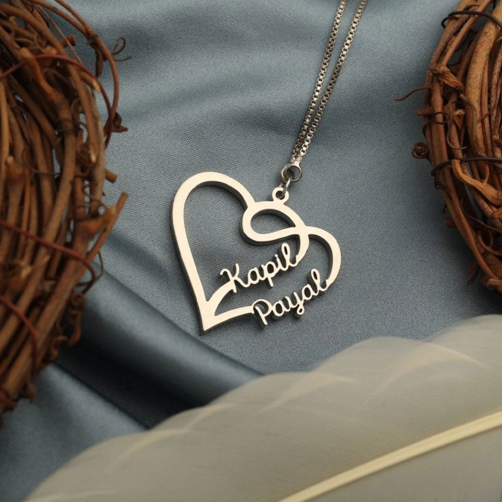 COUPLE NAME NECKLACE WITH HEART (18K GOLD PLATED)
