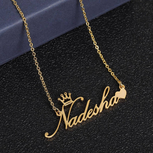 Gold Plated Crown Heart Name Necklace